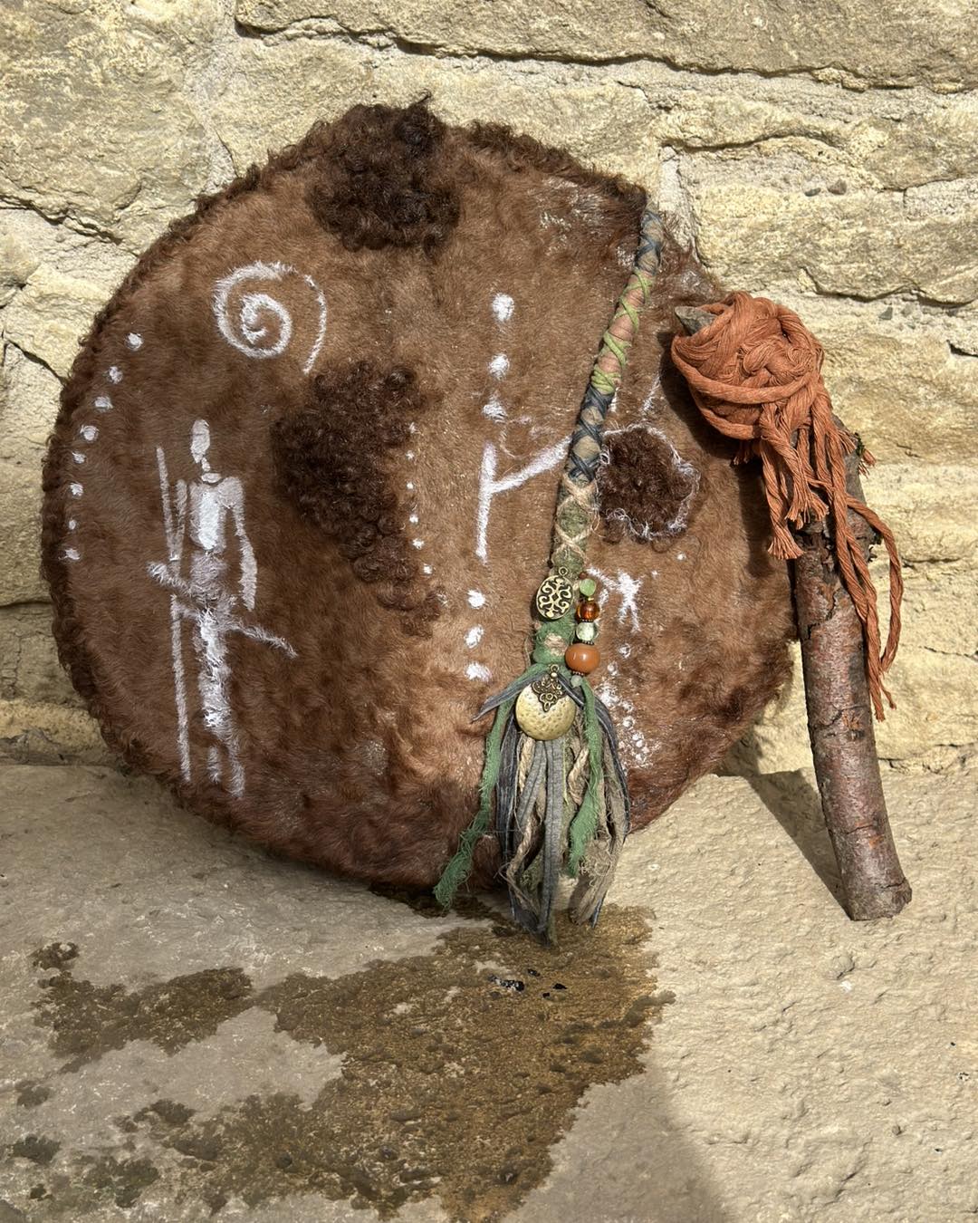 ✨ Caractéristiques du Tambour :• Tambour Médecine 39 cm• Peau de chameau avec poil• Cercle en bois de Neem• Ateba (lien sacré)• Mailloche incluse« Je suis le Tambour des terres lointaines,